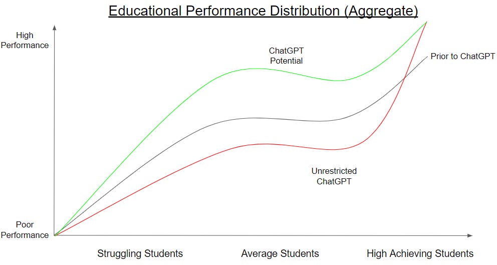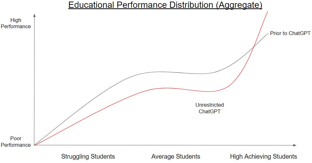 If left unchecked, ChatGPT and similar tools would polarize educational results (lowering overall educational outcomes while allowing a small, motivated top end to excel)