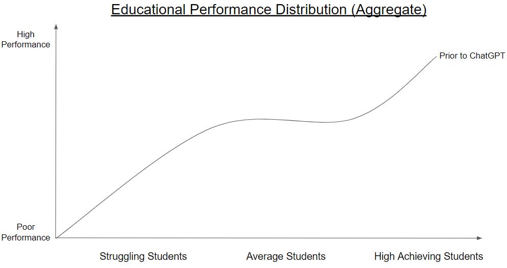 The average and underperforming students would atrophy academically, as ChatGPT is leveraged as an educational replacement
